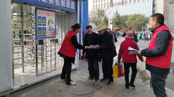 隨后,活動轉(zhuǎn)入消防宣傳實踐環(huán)節(jié)。圍繞“全民消防、生命至上——安全用火用電”主題,邀請消防專家結合施工現(xiàn)場易燃材料堆放、臨時用電密集等典型風險場景,系統(tǒng)講解火災預防要點、初期火情撲救技巧及疏散逃生注意事項。在實操教學中,專家現(xiàn)場演示滅火器“提、拔、握、壓”規(guī)范操作流程,對黨員們實操過程中的動作偏差逐一糾正指導,確保人人掌握核心技能。在模擬火情疏散演練中,全體黨員反應迅速、配合默契,有序完成疏散任務,展現(xiàn)出良好的組織紀律性和應急素養(yǎng)?;顒游猜?/span>,黨員志愿者身著紅色馬甲,向施工一線工人及周邊群眾發(fā)放消防宣傳手冊,用通俗易懂的語言講解家庭防火、電動車安全充電等常識,將安全理念傳遞到群眾心中。